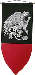 Inspired by the romantic castles of old, this glistening silver castle takes you back in time and gives you a touch of medieval era! Deep black top panel with Deep Red complementing bottom panel. Large: 48" H x 22-1/2" W. Item #608